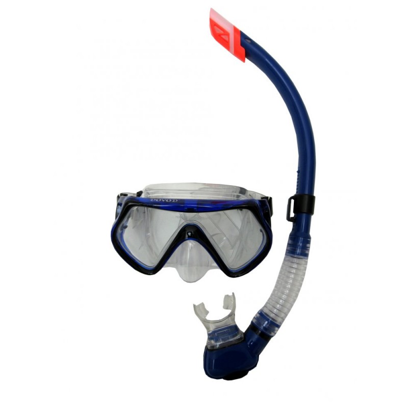 Potápěčský set DOVOD senior - brýle + šnorchl s ventilem a vlnolamem je vyroben z materiálu TPR. Brýle mají nedělený zorník. Šnorchl má ergonomicky tvarovaný náustek zhotovený z antibakteriálního, hypoalergenního a příjemně měkkého materiálu. Vlnolam minimalizuje vniknutí vody do šnorchlu a výdechový ventil zajišťuje snadné vyfouknutí vody ze šnorchlu. Dále je šnorchl vybaven posuvným držákem, pro rychlé a snadné upevnění k brýlím.