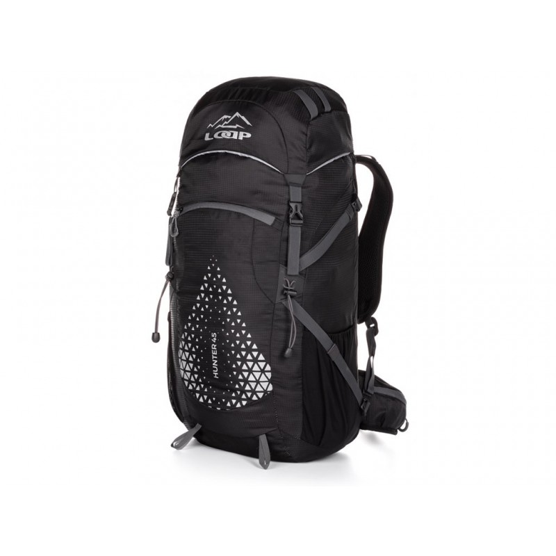 Turistický batoh Loap HUNTER 45 má speciální zádový systém AVS, který zajišťuje maximální odvětrávání zad - batoh nepřilne přímo na záda. Zádová konstrukce je nezávislá na samotném batohu a můžete ji snadno vyjmout. Batoh má jednu hlavní komoru v níž je jedna menší oddělená kapsa, dvě menší kapsičky vnější na zip a dvě boční např. na lahev a další drobnosti. Ramenní popruhy jsou anatomicky tvarované. Nechybí bederní pás, na kterém jsou dvě malé kapsičky na zip a prsní spojka, které odlehčí zádům. Dále boční kompresní popruhy, balanční popruhy a praktické úchyty na další vybavení. Rozměry batohu (V x Š x H x) 72 x 33 x 24cm, objem 45 litrů, hmotnost 860g a nosnost 12kg.
