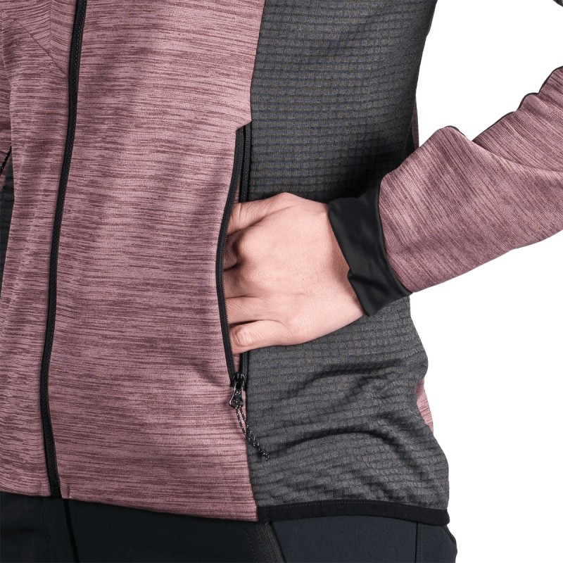 Dámská fleecová mikina Northfinder JACLYN je rozepínací se stojáčkem, který ochrání krk před chladem a větrem. Výborně funguje jako universální druhá vrstva. Materiál je kombinace melanžového fleecu s prodyšným gridovým materiálem, který se postará o efektivní odvětrání a odvod vlhkosti při vyšší aktivitě. Mikina poskytuje teplo, komfort a prodyšnost i při náročné turistice. Vnější strana je hladká a vnitřní strana počesaná s úpravou proti žmolkování. Vhodná na všechny druhy outdoorových aktivit. Dvě boční kapsy a jedna na hrudi se zapínáním na zip. Spodní okraj mikiny a okraje rukávů jsou zakončeny pružným lemem. Reflexní prvky.
