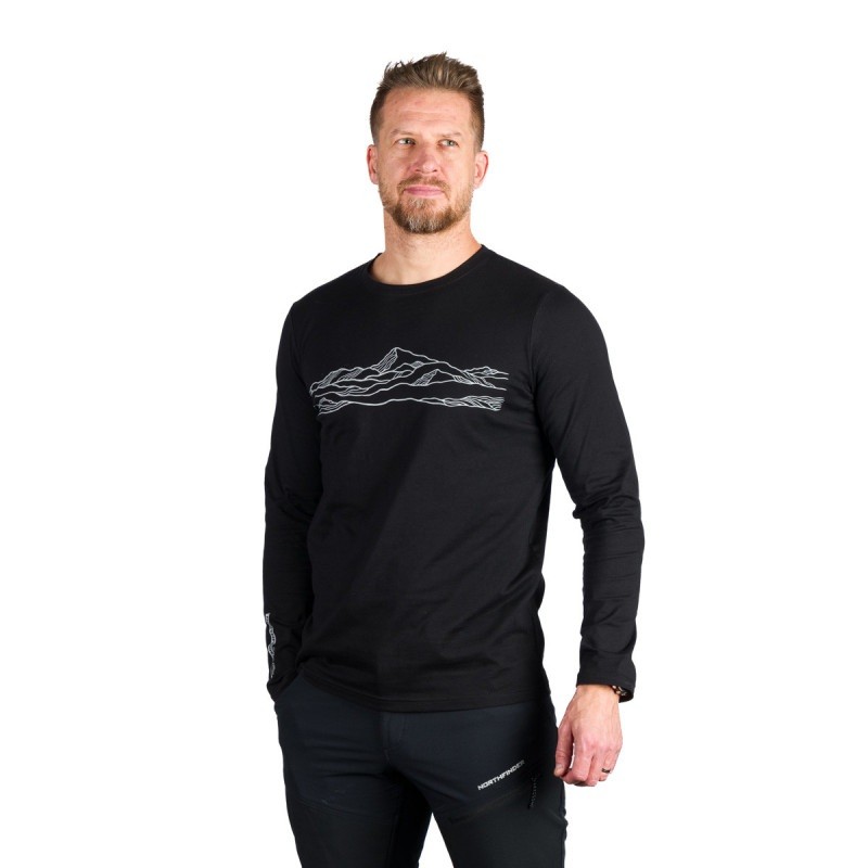 Triko s dlouhým rukávem, potisk s motivem hor.